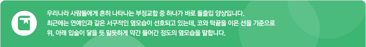 세련된 인상으로의 변화를 줄 수 있습니다. 또한, 돌출된 입이 들어가면서 추가적인 효과로 턱 선이 갸름해지기도 합니다.